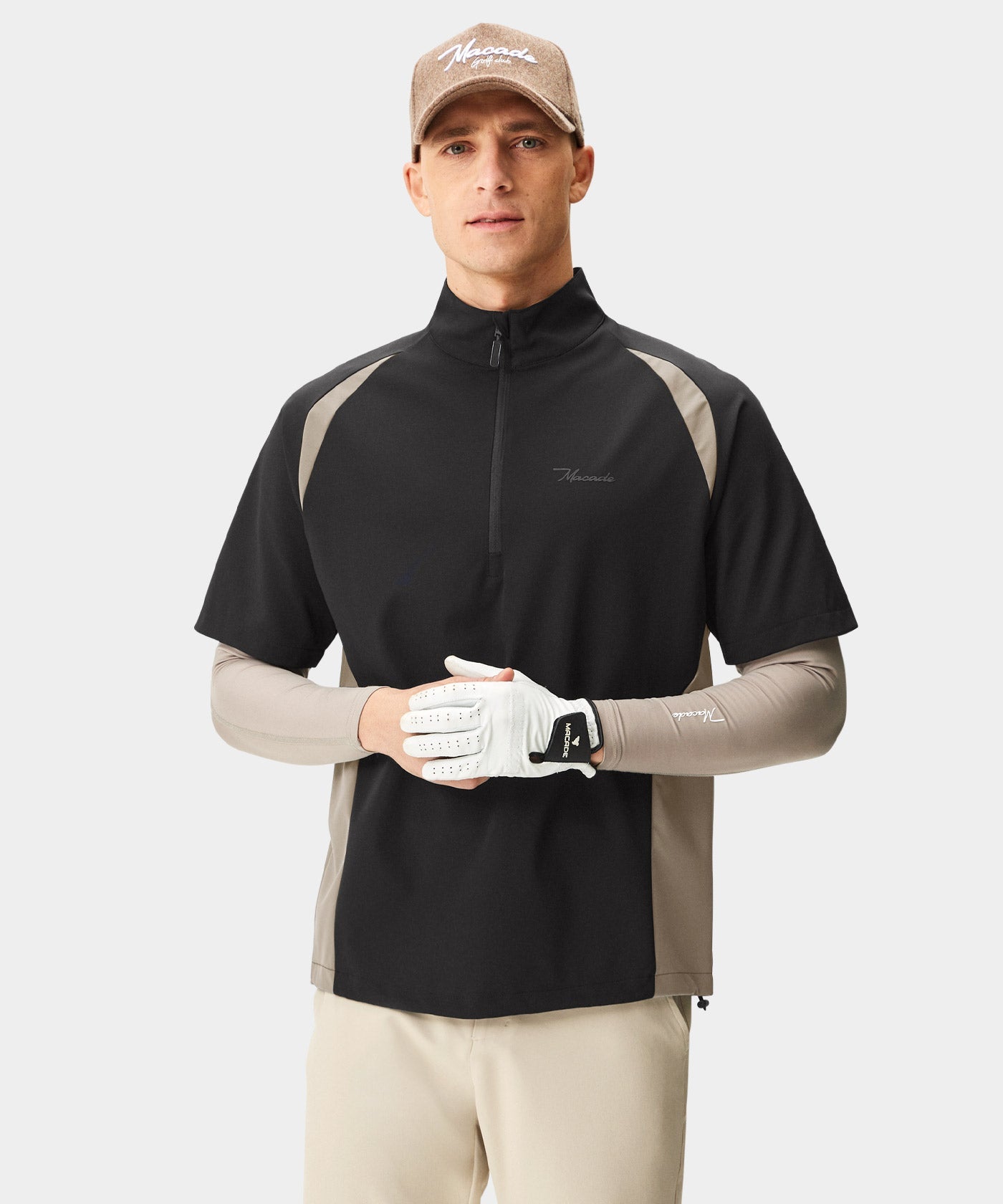 A Macade novelty for golfers who extend the season as much as possible. Engineered for cold-weather play, this piece blends thermal comfort with professional-grade performance allowing for easy movement while maintaining a sleek, polished look. Zippered pockets on the chest and waist are ideal for storing accessories and the full-length zipper features a practical zipper hold designed to be used even with gloves on a frigid day.