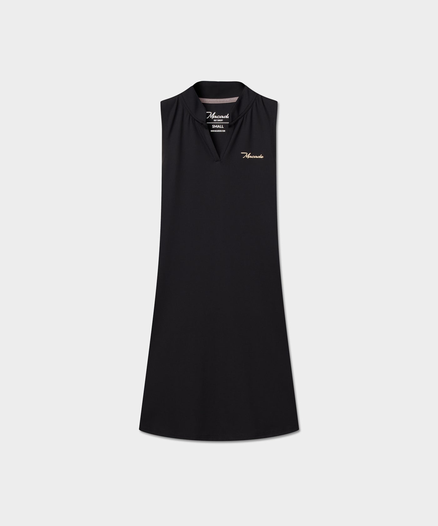 A Sleeveless performance dress with a streamlined silhouette and a subtle textured surface. The stretch fabric allows comfortable movement while maintaining a polished appearance. A confident one-piece option for warm days on the course.